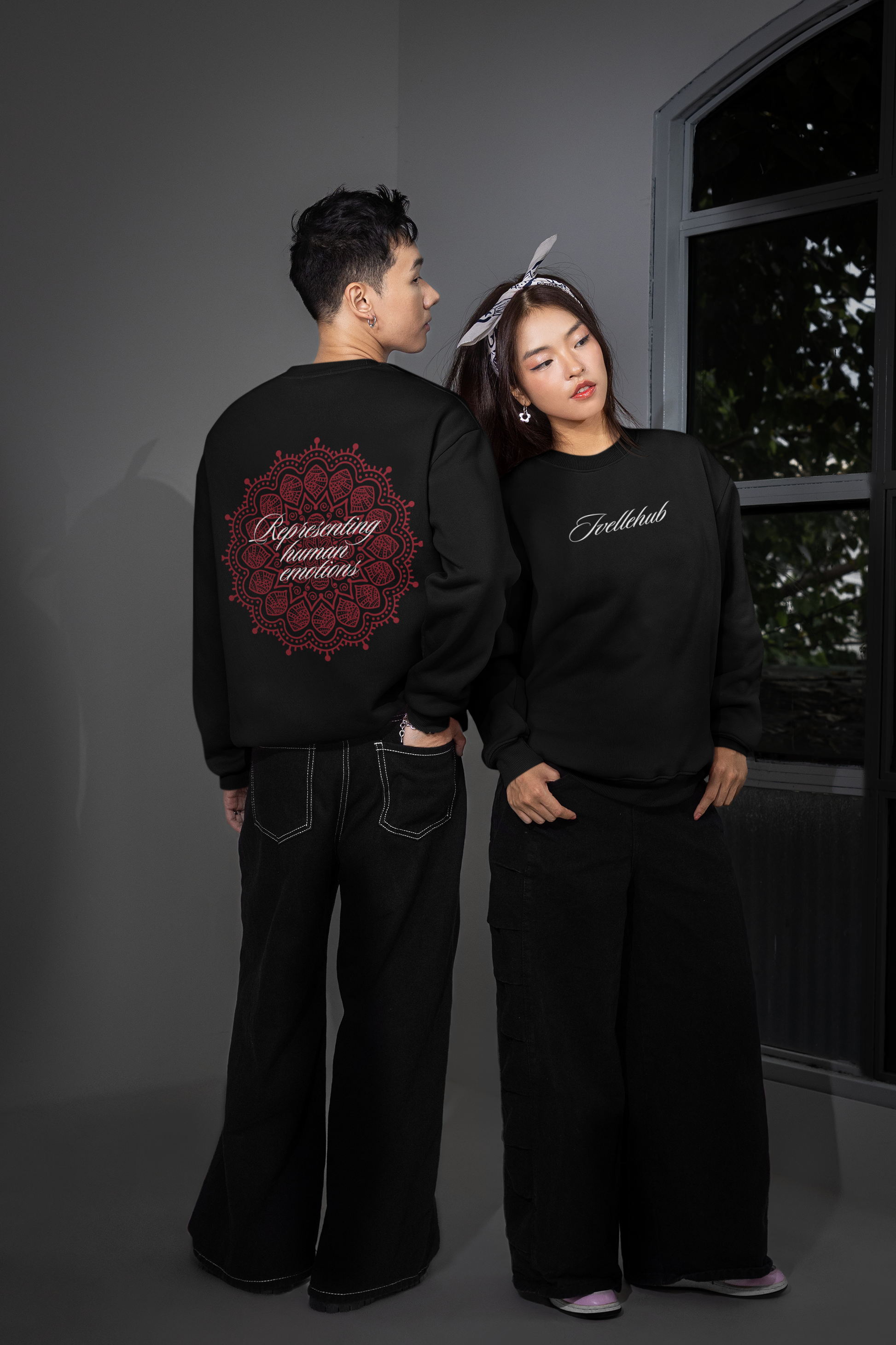 - Unisex Black sweatshirt pattern with a regular fit
